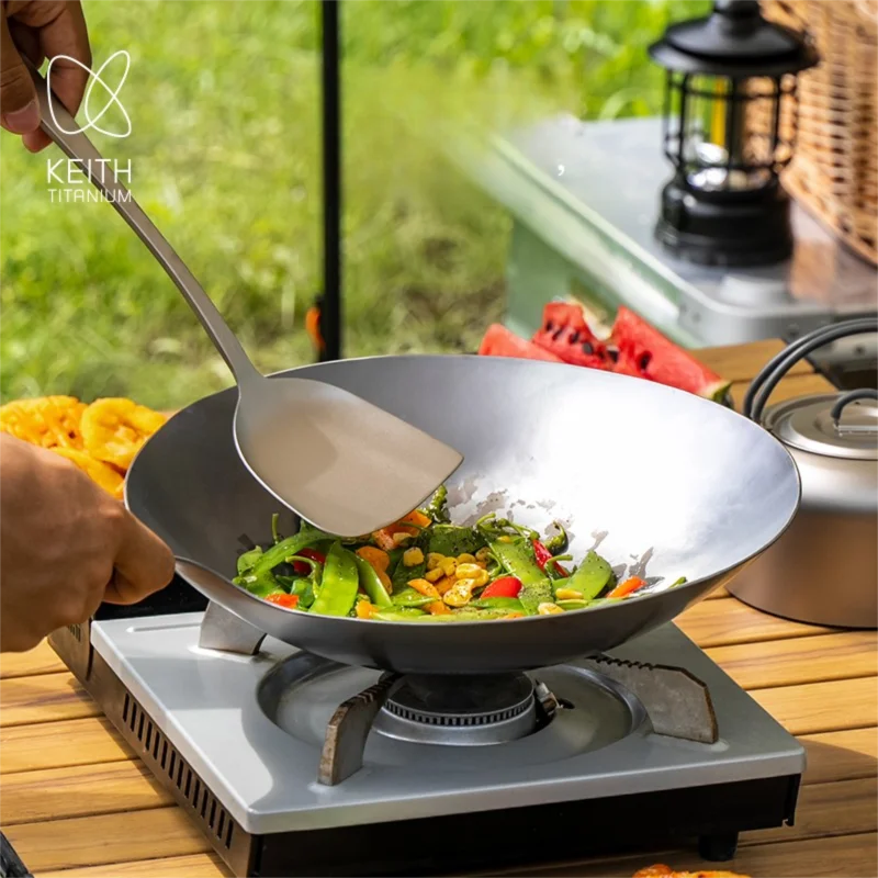 The KEITH Titanium Wok is a premium lightweight cooking pan designed for outdoor stir-frying, grilling, and everyday kitchen use. Weighing only 830g, it offers exceptional strength and durability while remaining easy to carry for camping, backpacking, and travel. Made from high-quality pure titanium, it is resistant to corrosion, safe for food contact, and won’t affect the flavor of your meals.