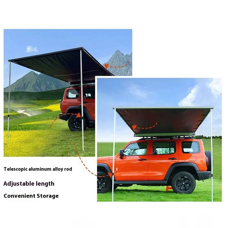 This universal car side awning provides instant shade for outdoor adventures. Designed for quick fold setup and fast storage when on the go. Mounts easily to most vehicles, RVs, and off-road setups. Durable fabric offers reliable sun protection and cooling comfort. Ideal for camping, road trips, and outdoor休息 stops. Portable design makes it easy to transport and store. Strong structure ensures stability in outdoor conditions. Creates a comfortable shaded area beside your vehicle. Perfect for picnics, cooking, or relaxing outdoors. Weather-resistant material supports long-term outdoor use. Suitable for off-road, overland, and RV camping. Enjoy convenience, shade, and comfort with this vehicle side awning.
